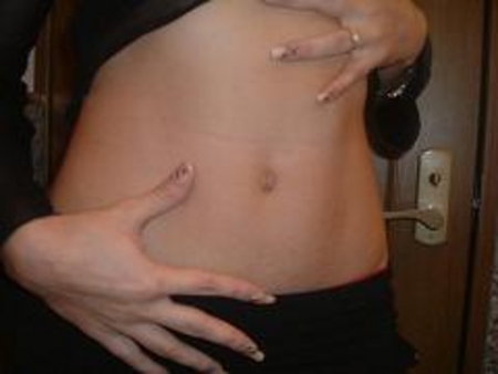 内臓が落ち、下腹部がぽっこりと出た、ぽっこりお腹になっちゃってます。