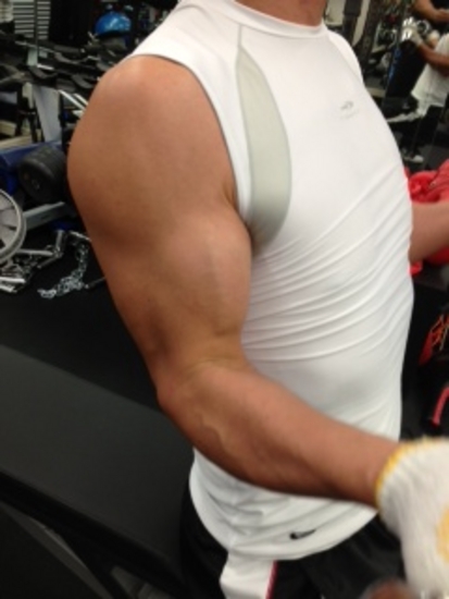 見違えるように、腕の筋肉が成長されたYさんの肉体改造ビフォーアフター画像です。